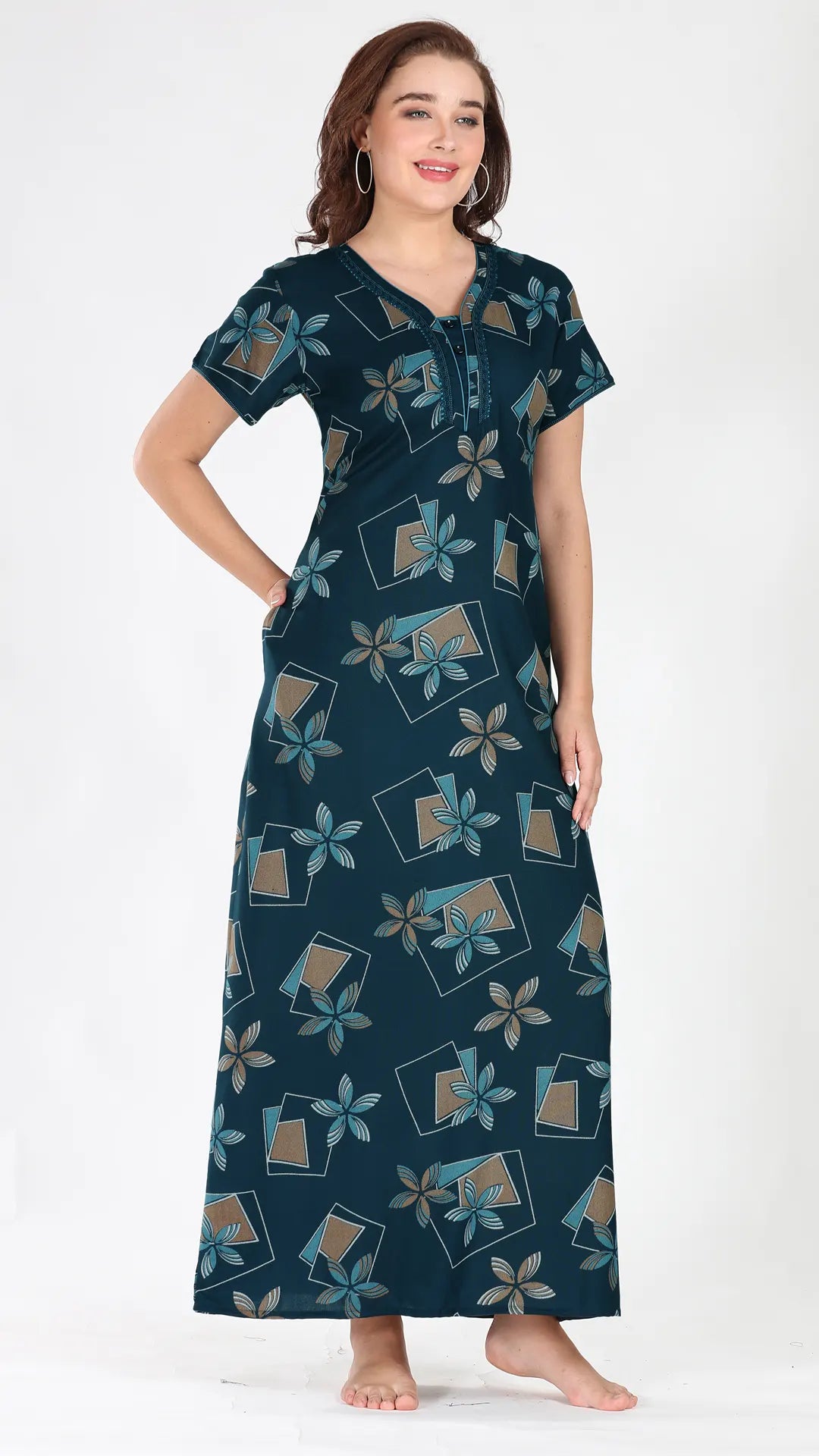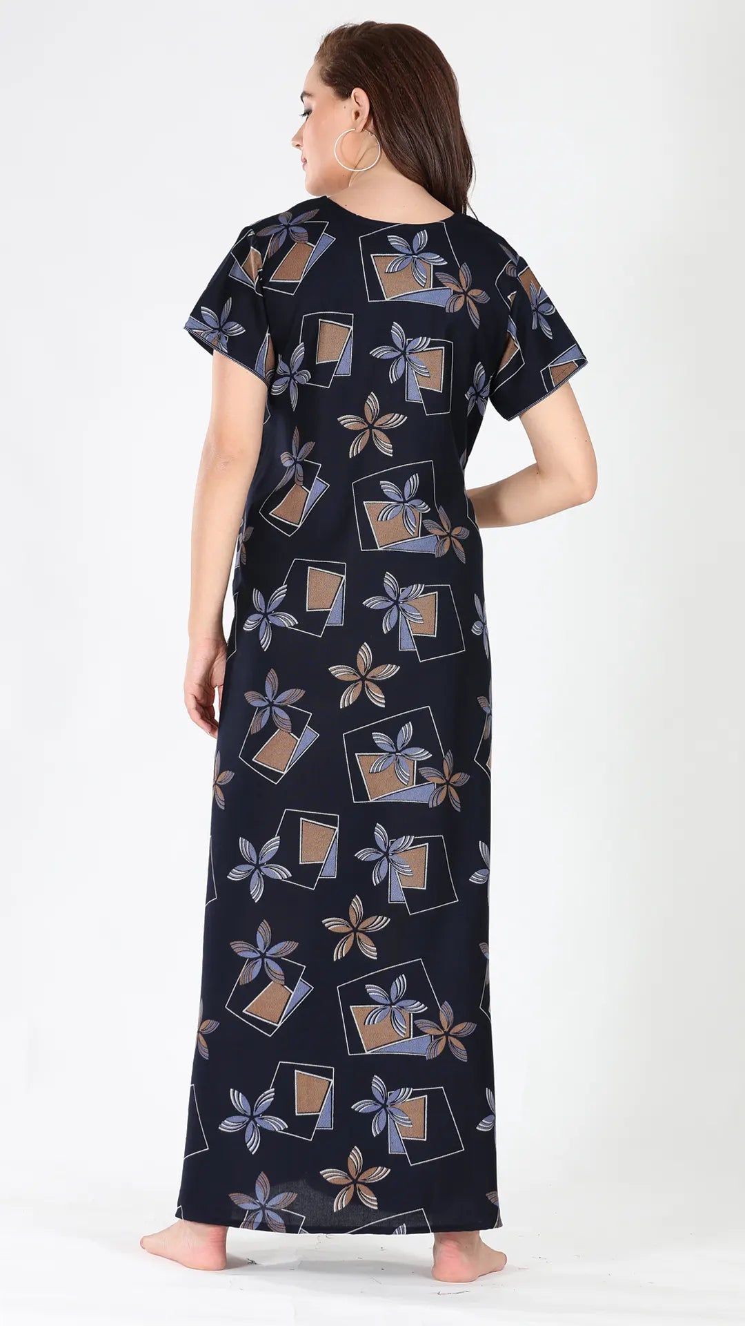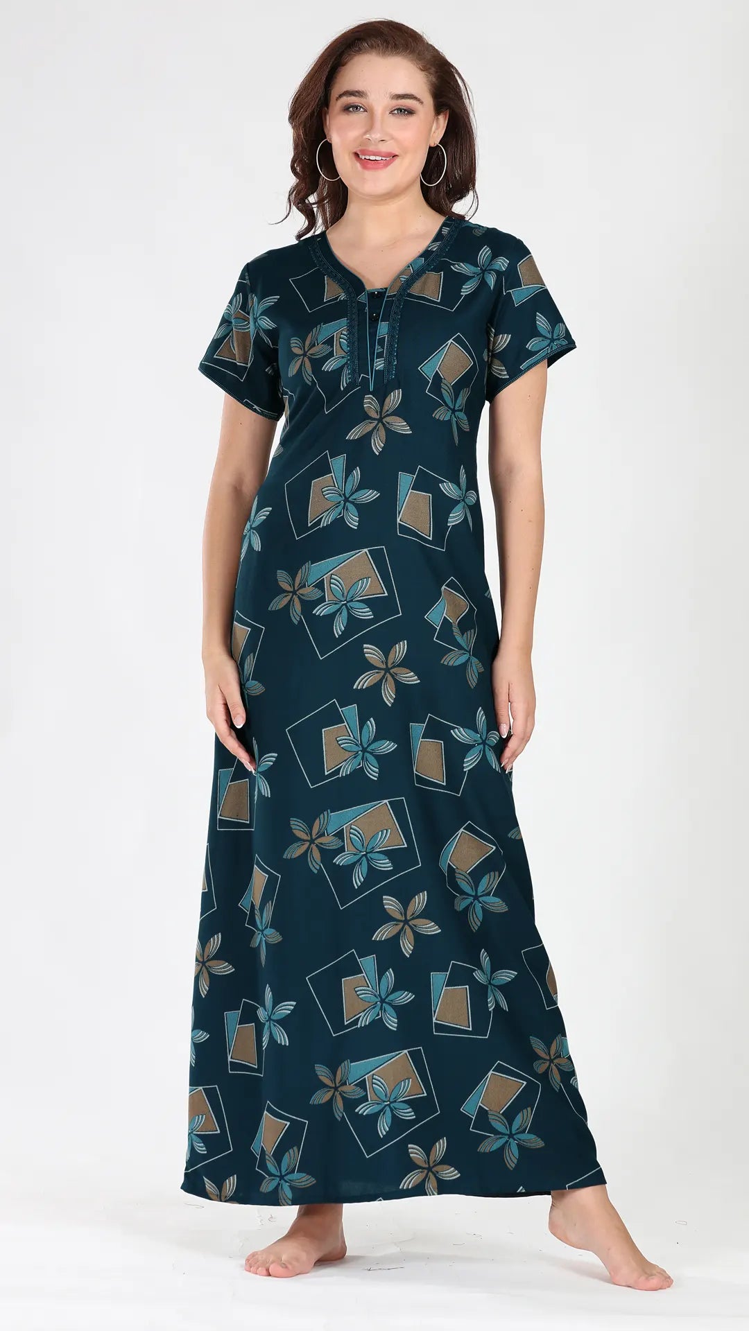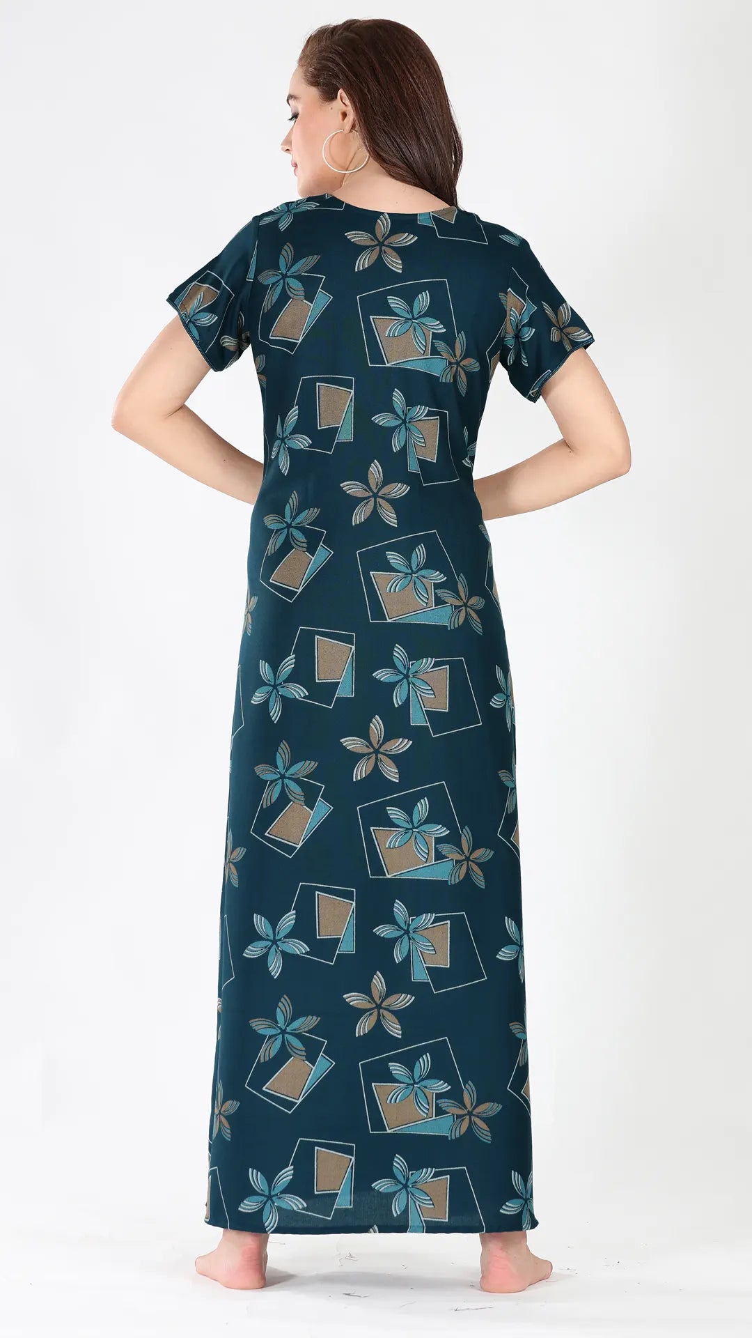 Sukanya Women's Viscose Polyester Printed Nighty - Half Sleeves, Round Neck, Full Length