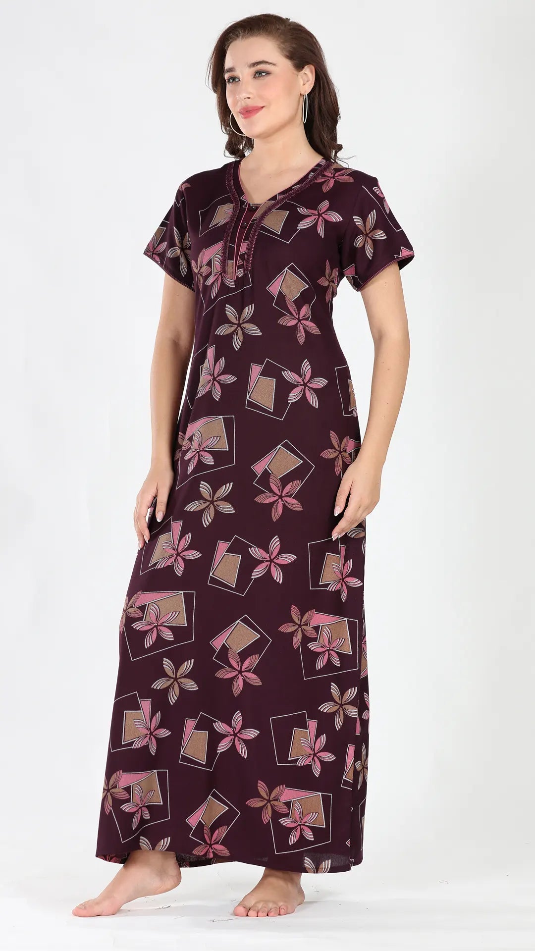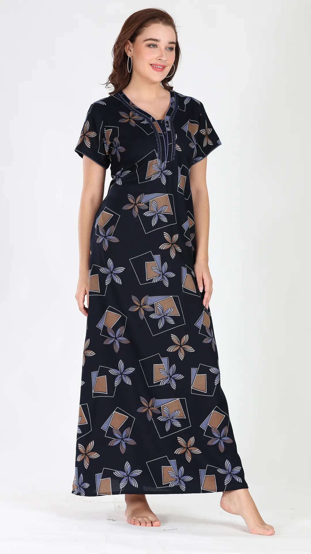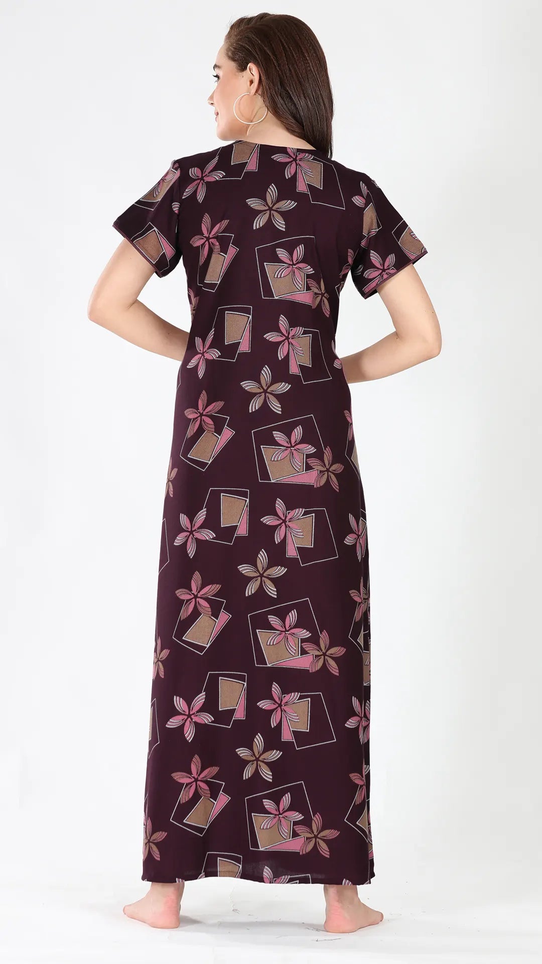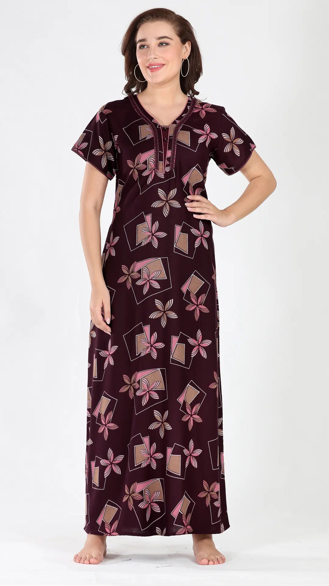 Sukanya Women's Viscose Polyester Printed Nighty - Half Sleeves, Round Neck, Full Length