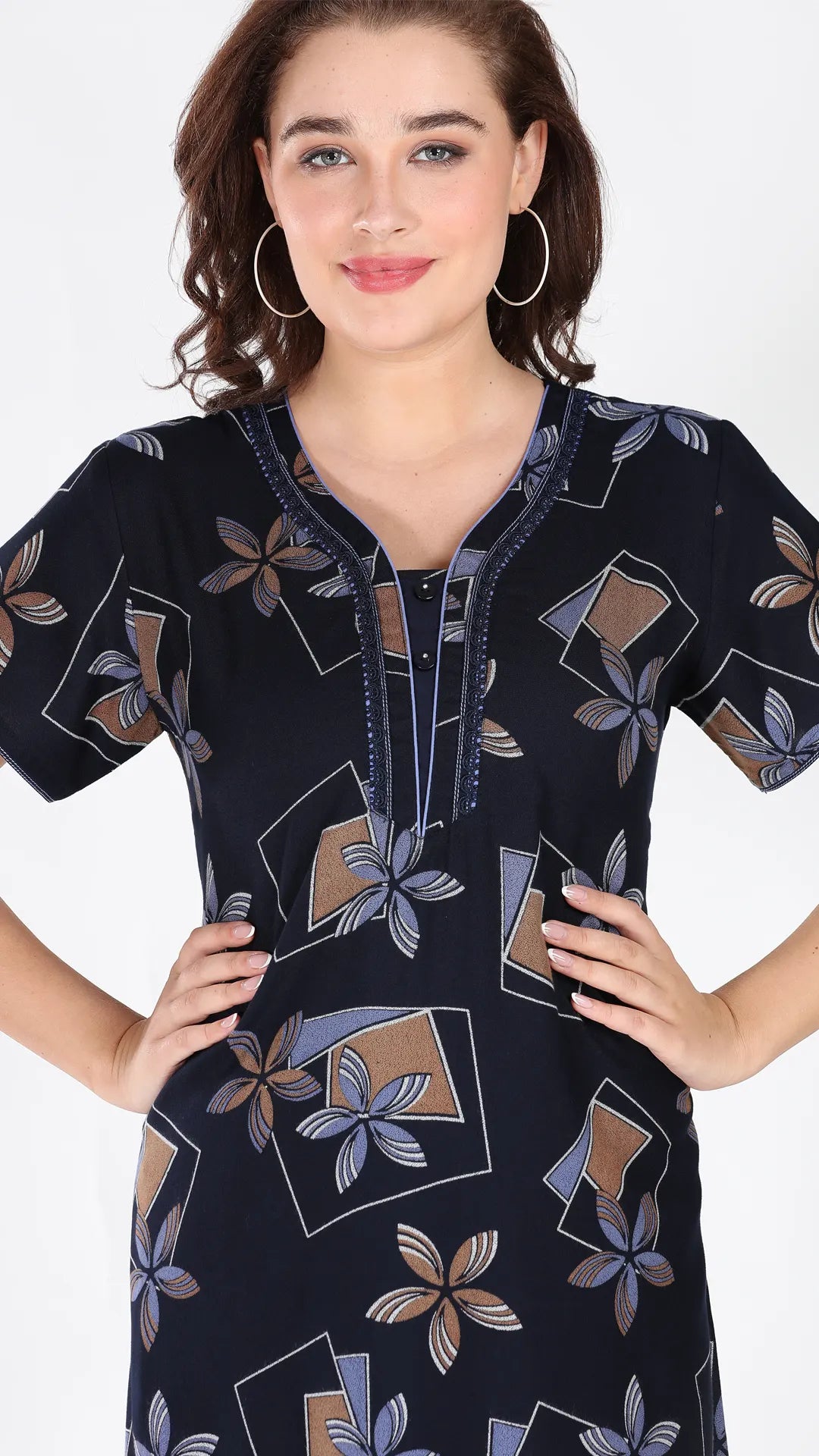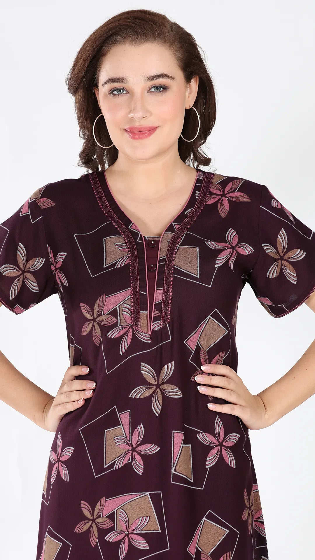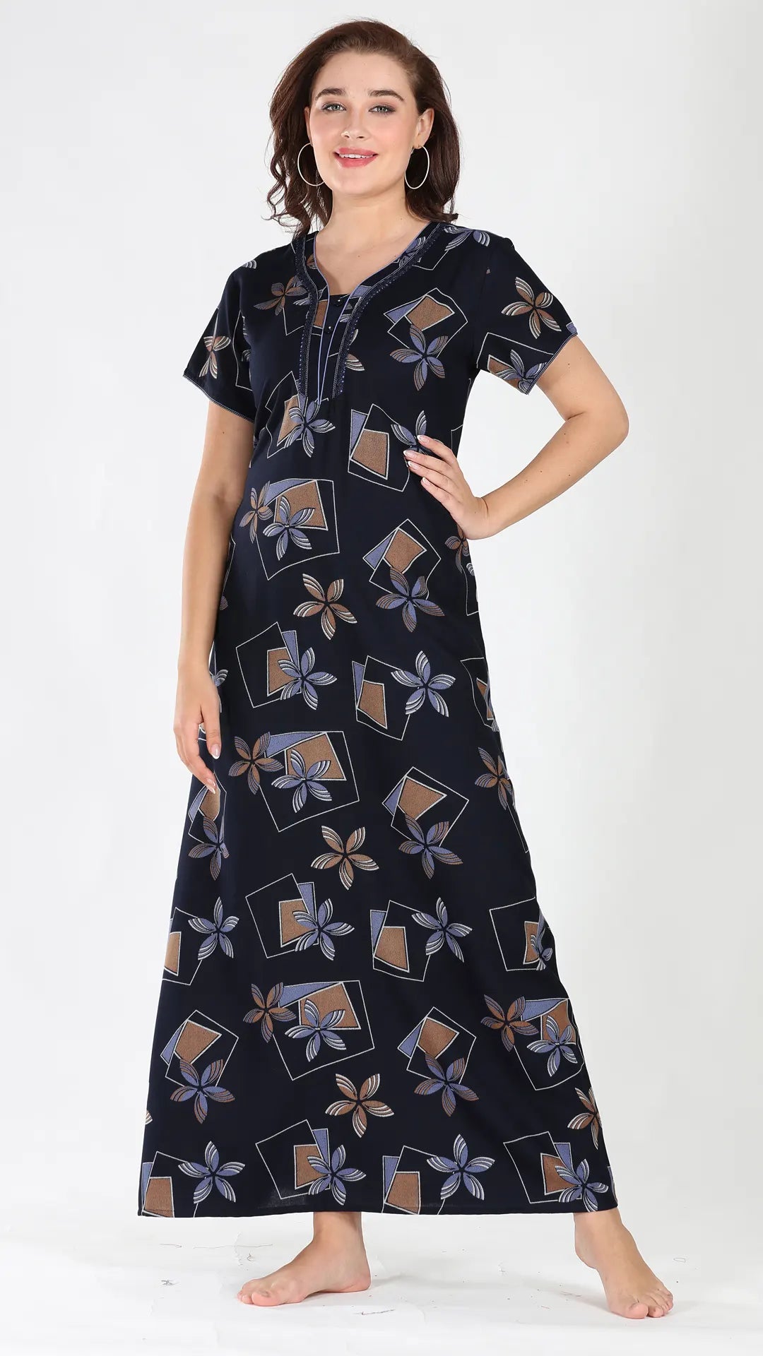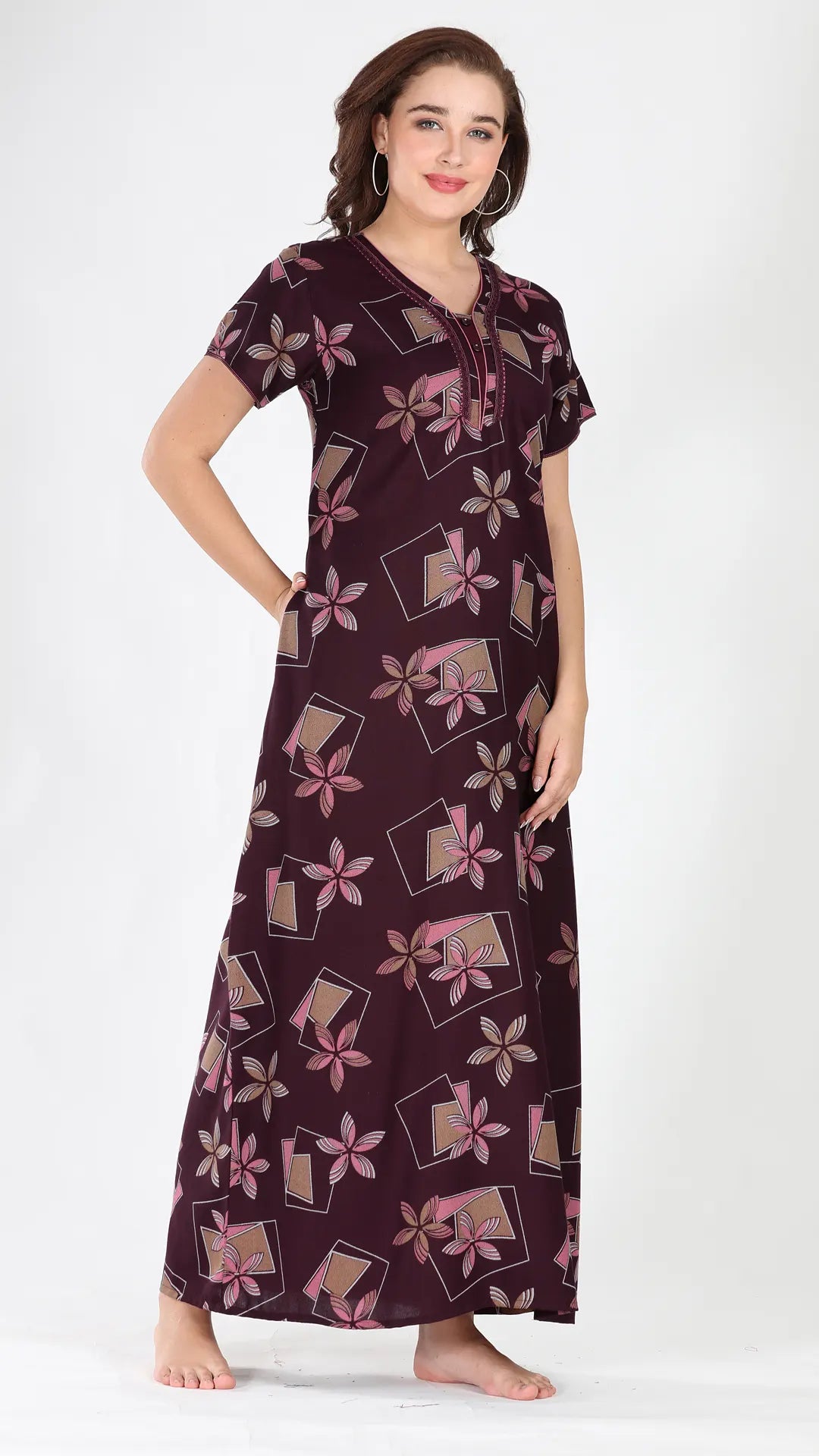 Sukanya Women's Viscose Polyester Printed Nighty - Half Sleeves, Round Neck, Full Length