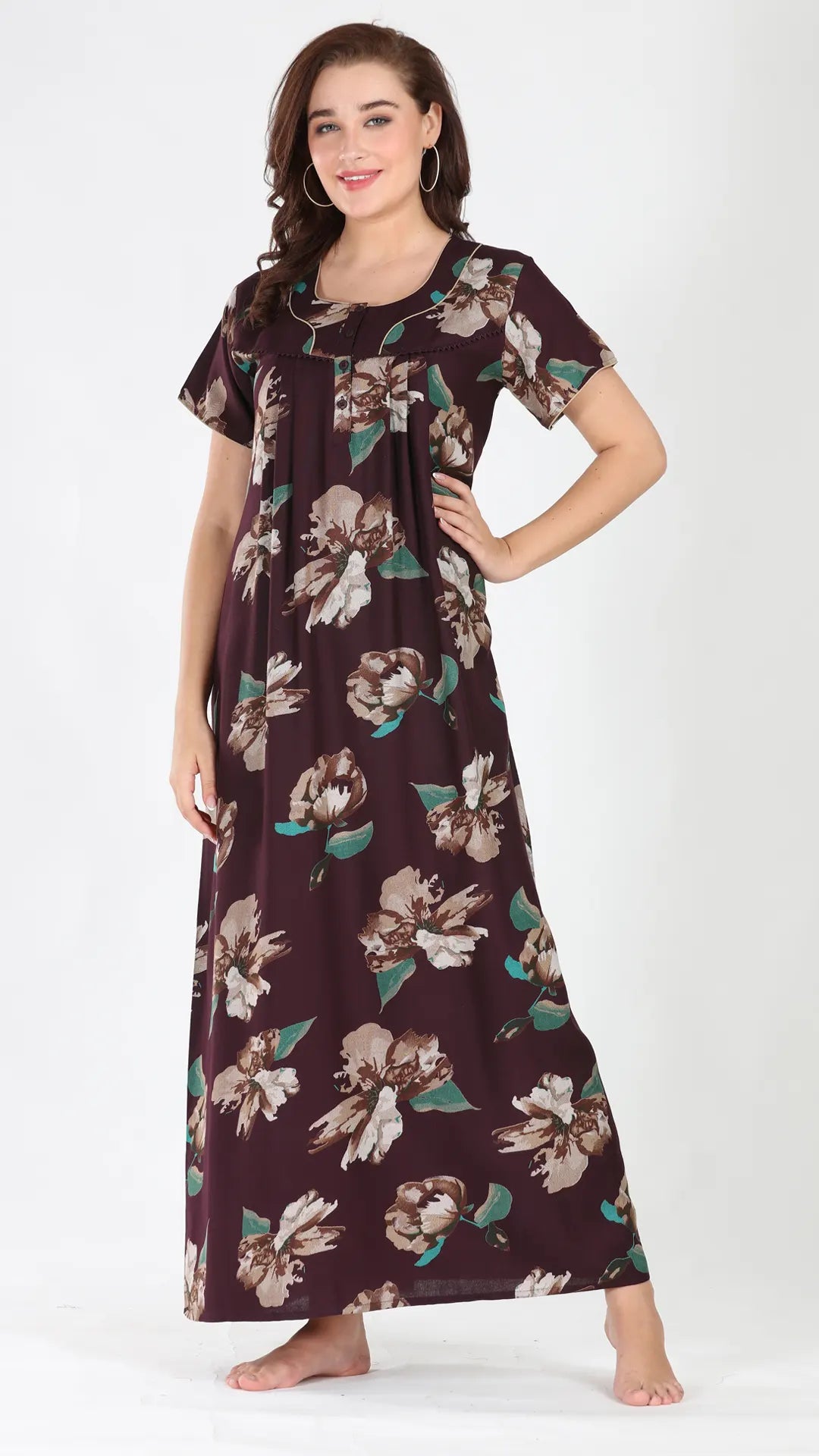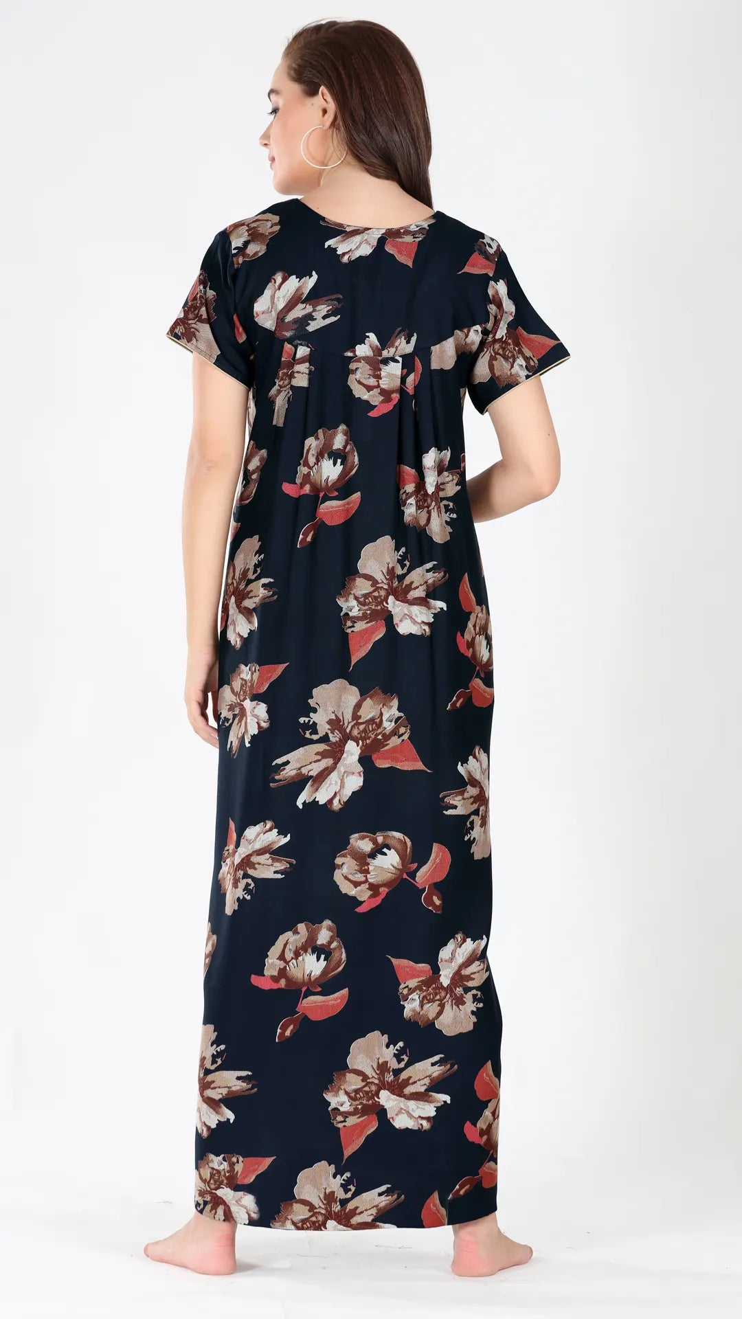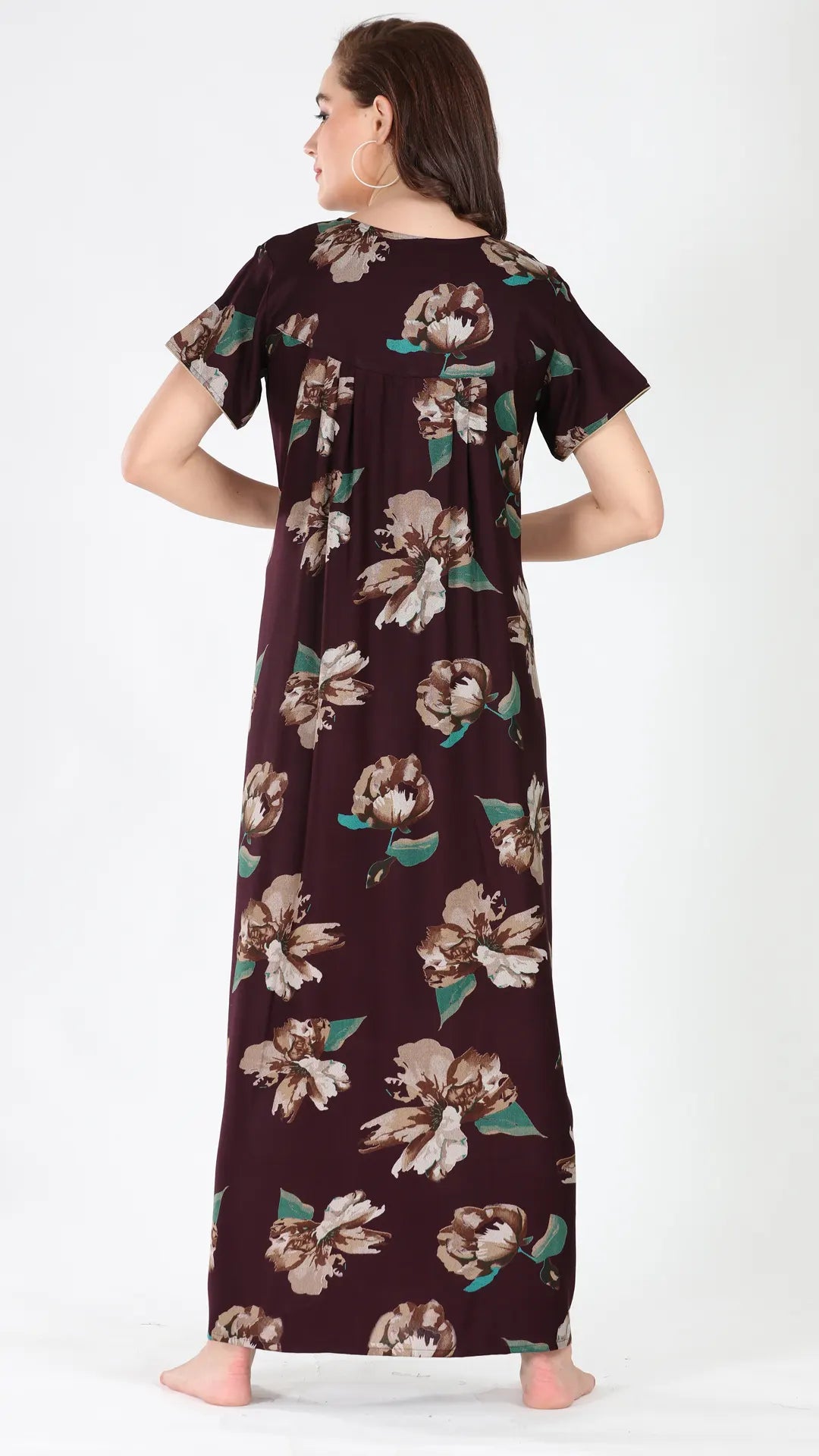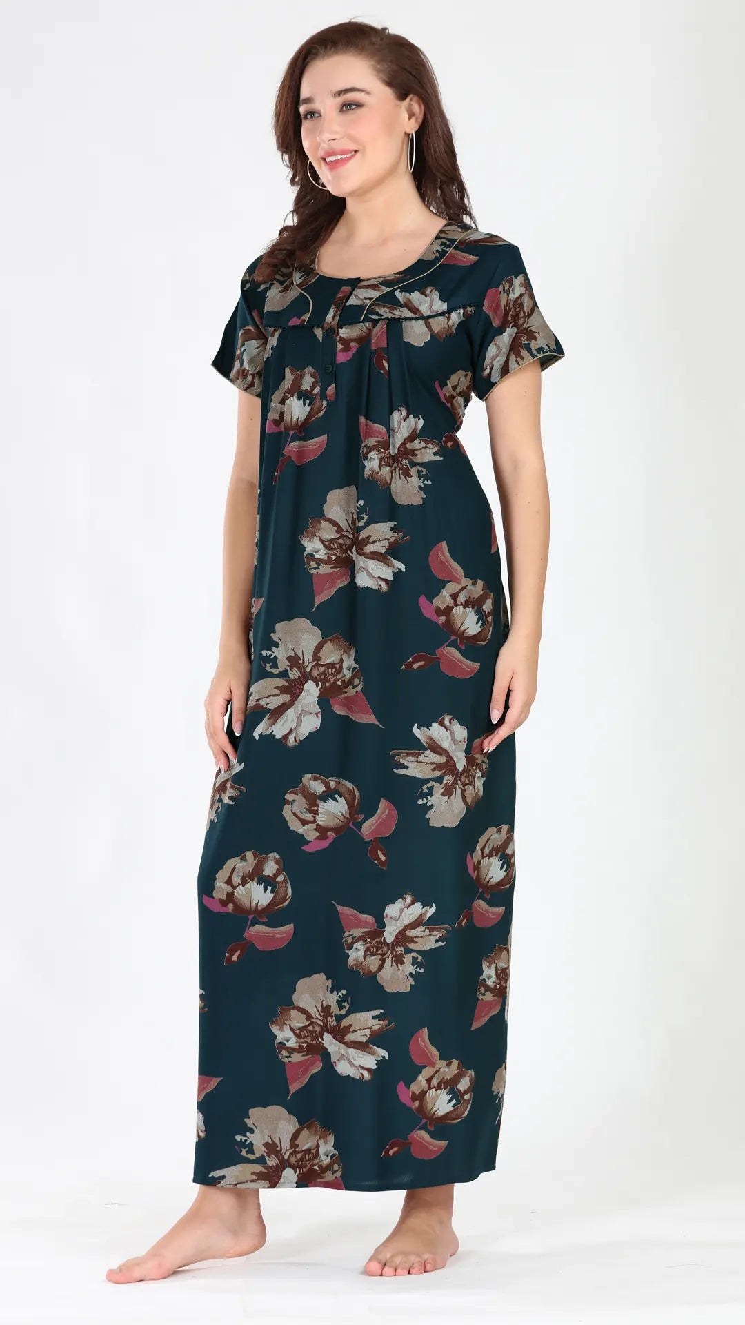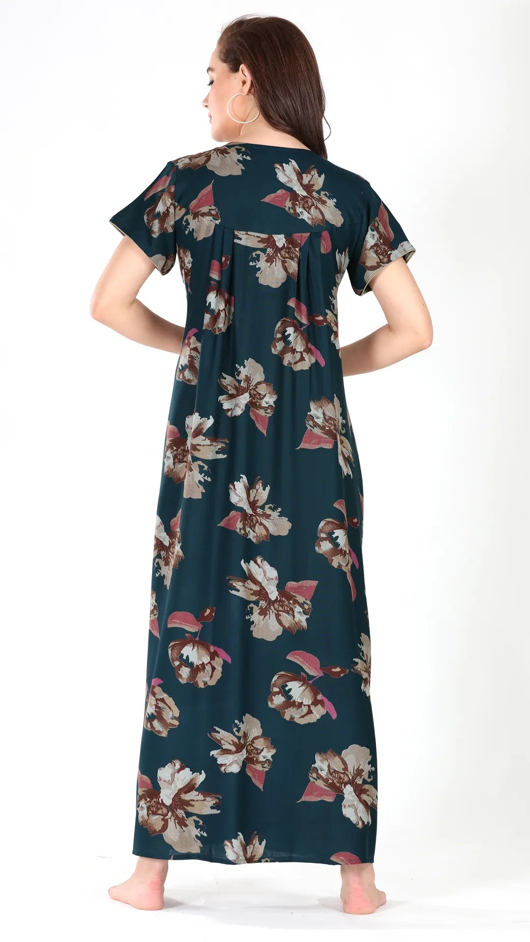 Sukanya Women's Viscose Polyester Printed Nighty - Half Sleeves, Round Neck, Full Length