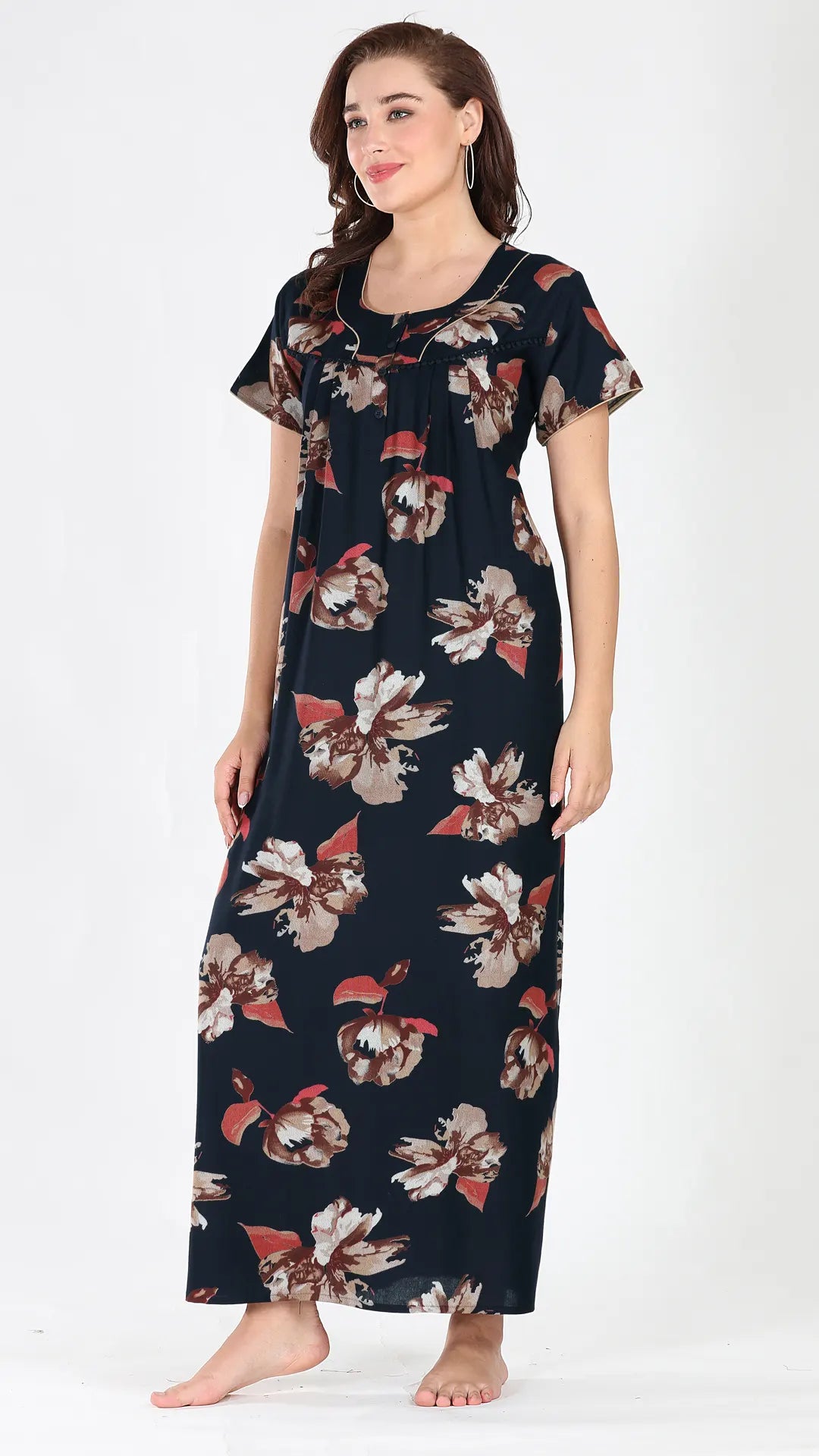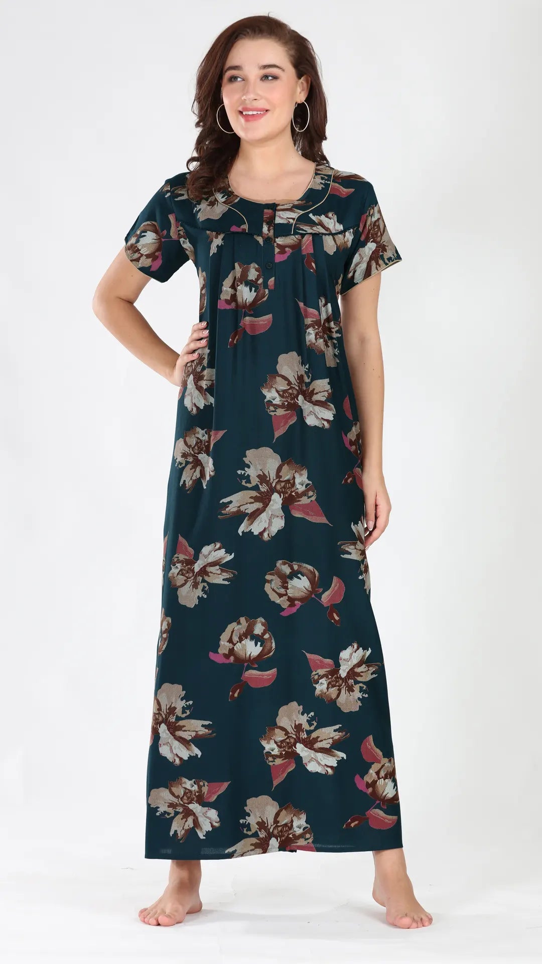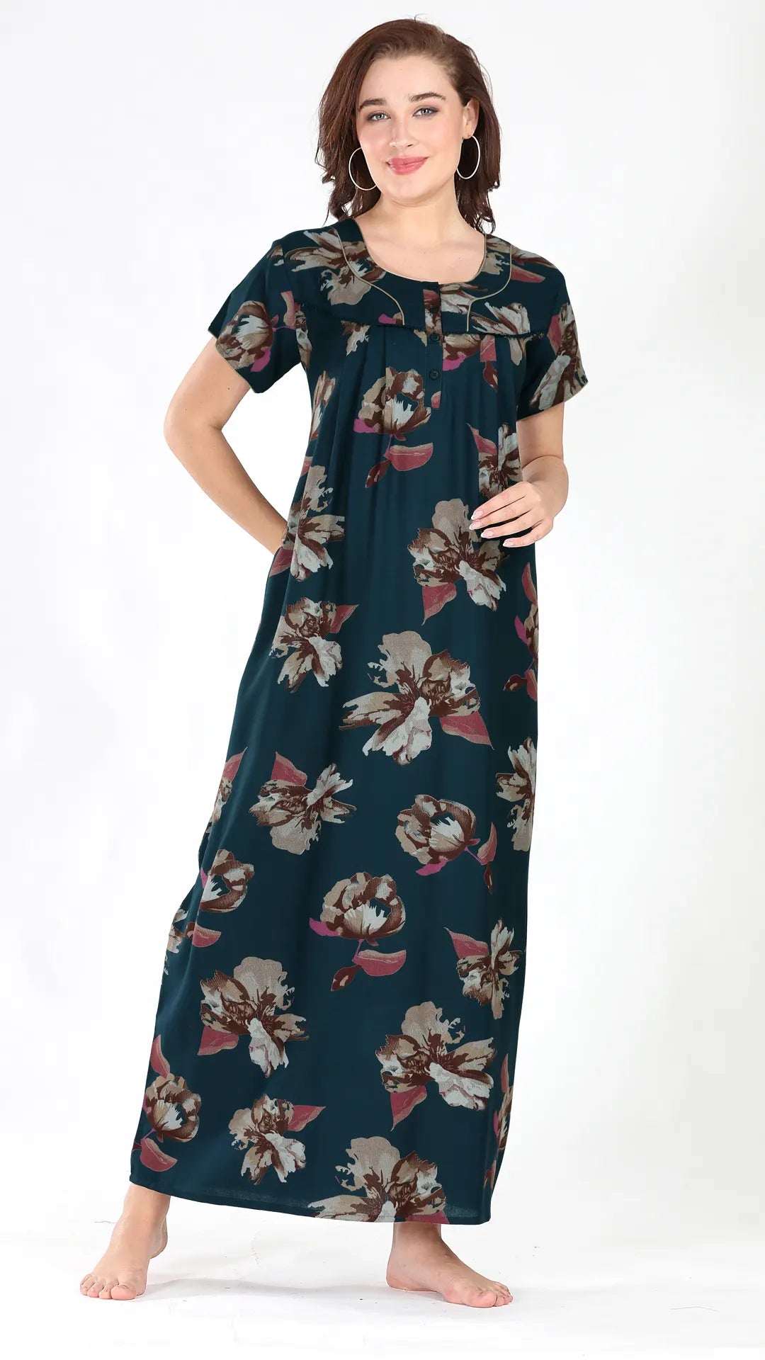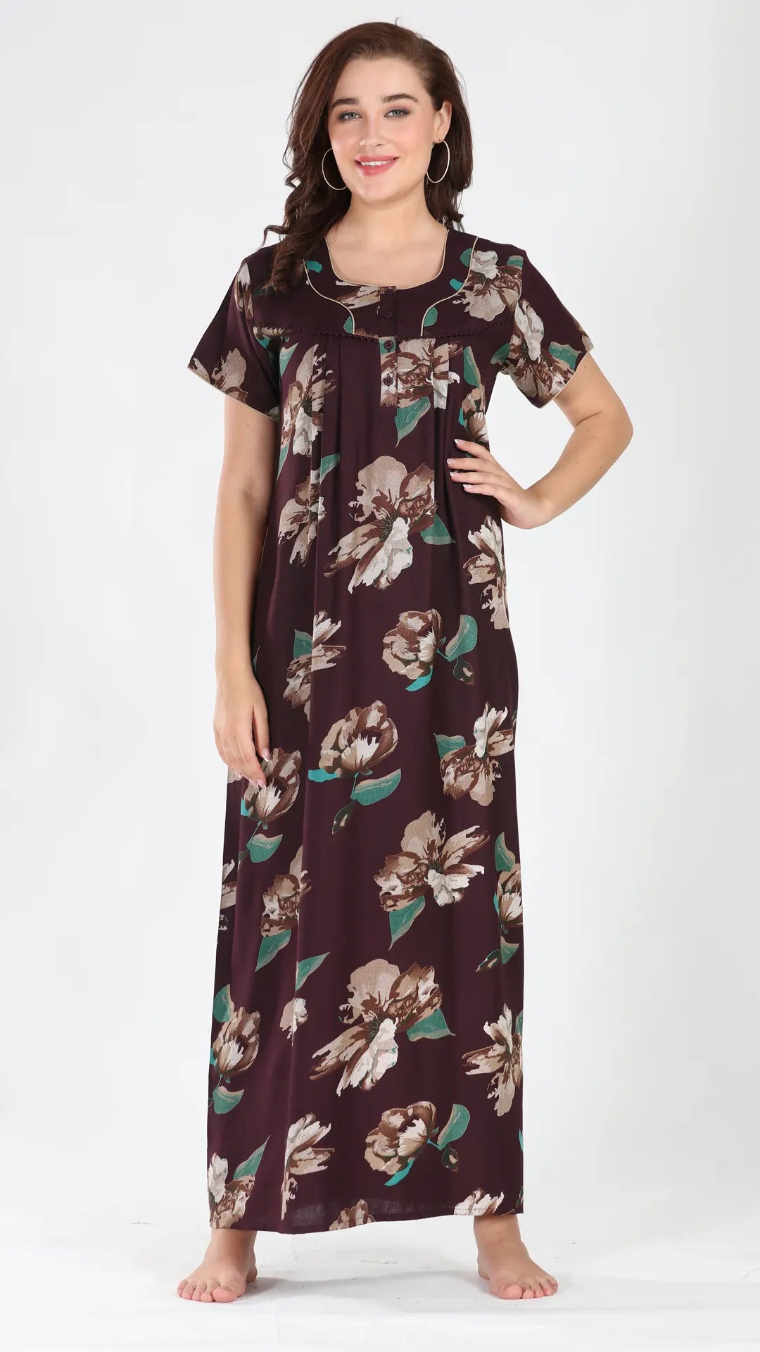 Sukanya Women's Viscose Polyester Printed Nighty - Half Sleeves, Round Neck, Full Length