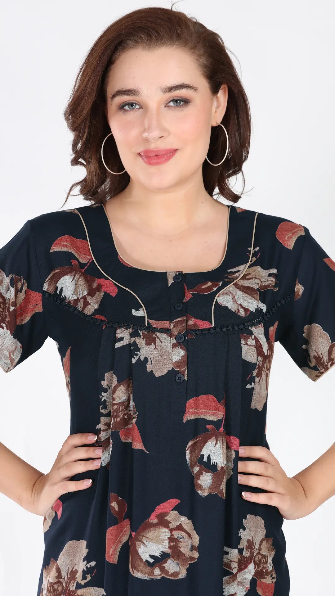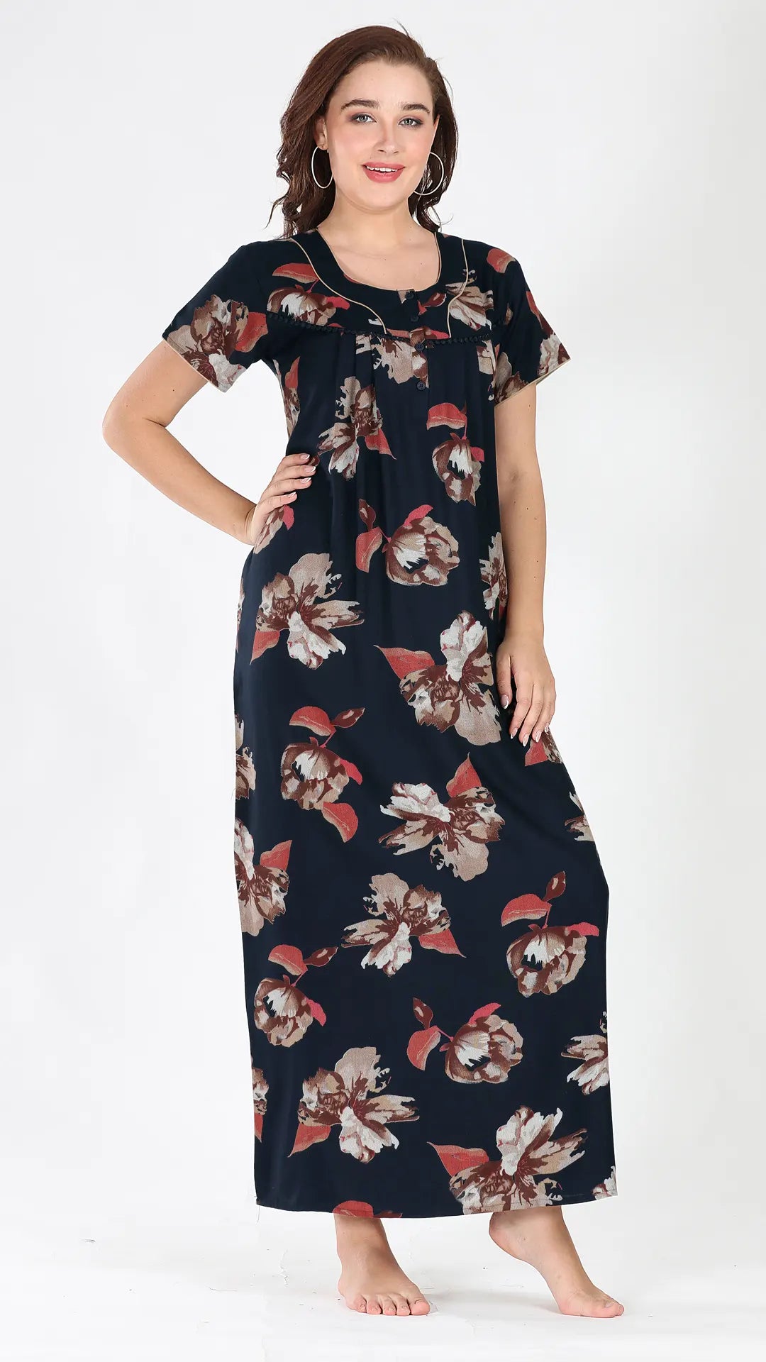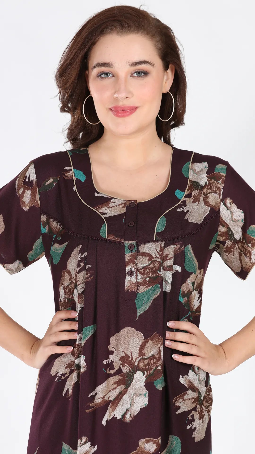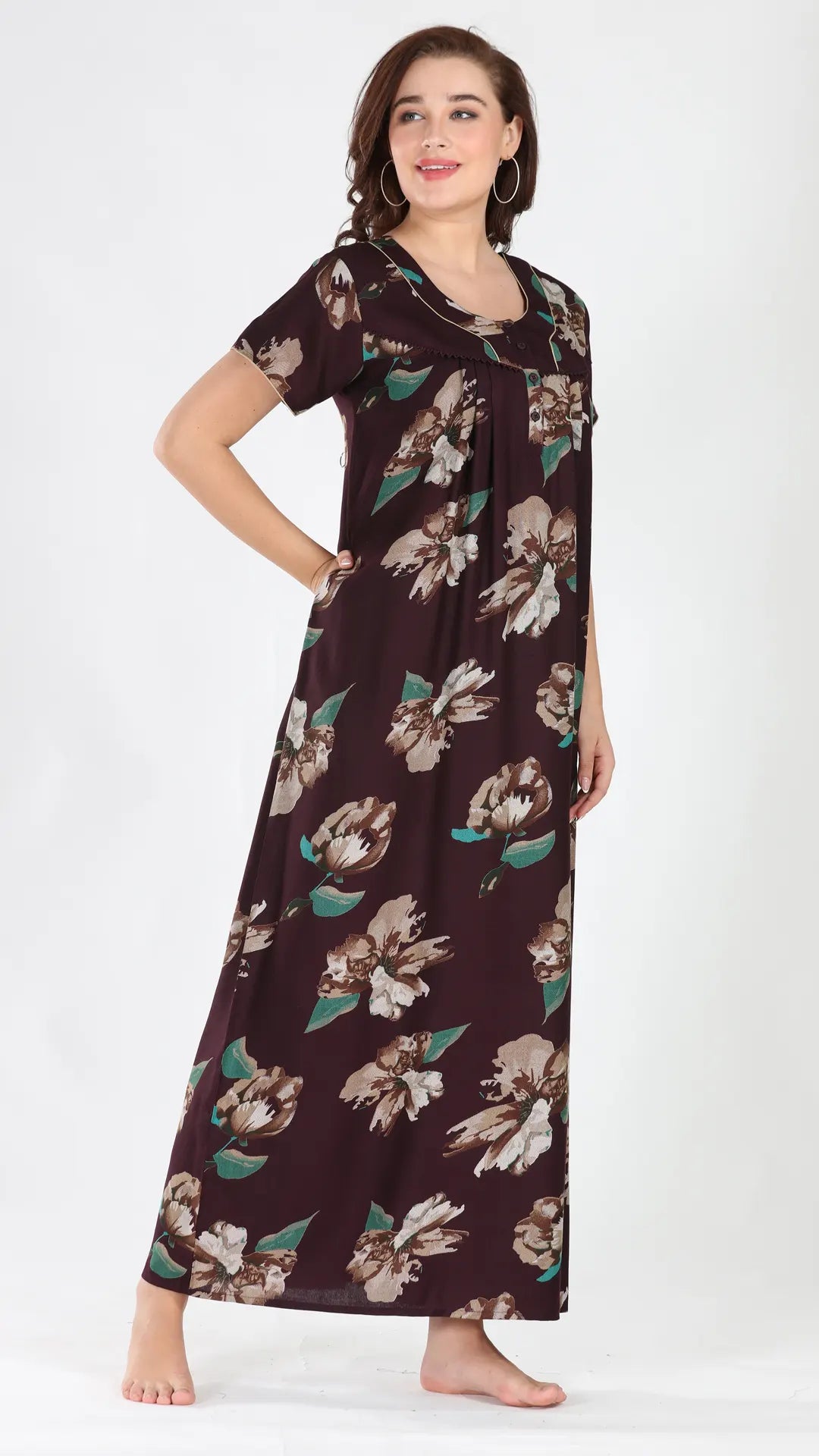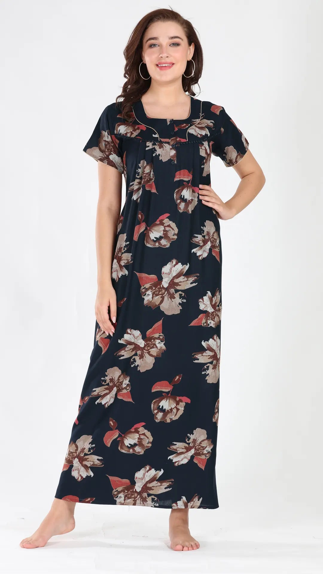 Sukanya Women's Viscose Polyester Printed Nighty - Half Sleeves, Round Neck, Full Length